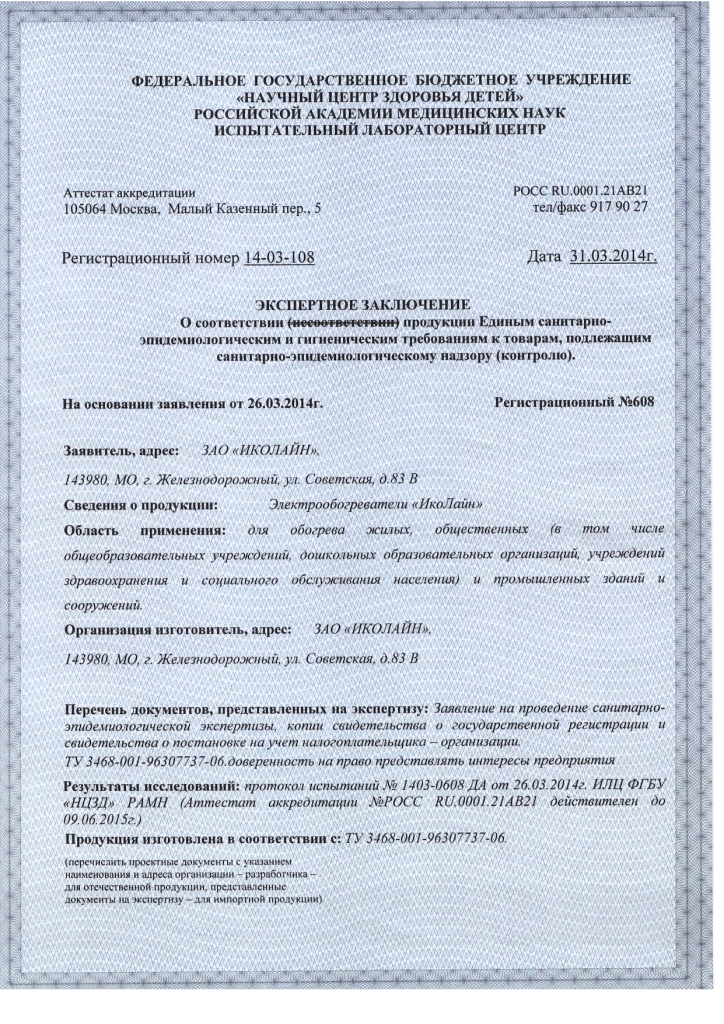 Инфракрасные обогреватели "ИкоЛайн" уже не один год используются во многих детских садиках, но все-равно, когда очередной детский садик рассматривает вопрос об установке наших обогревателей, поднимается вопрос об их безопасности для здоровья детей. Теперь есть официальный документ, разрешающий использование инфракрасных обогревателей "ИкоЛайн" в детских садиках и любых других общеобразовательных учреждениях.